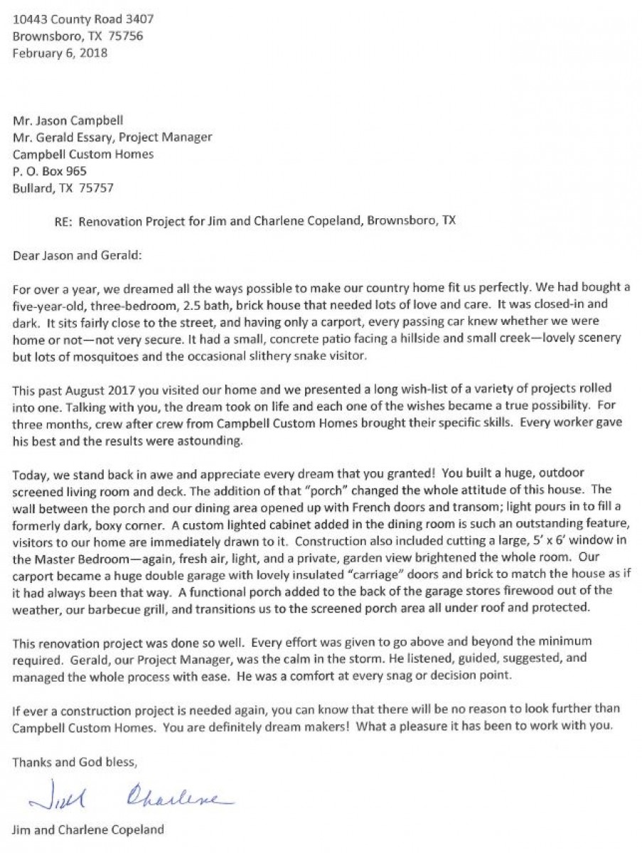 Home Remodeling In Tyler Tx Campbell Custom Homes Youtube from i.ytimg.com Interested in learning how we can help make your dream of a custom home a reality? We take custom to the extreme. My wife and i have had mcclure custom homes do one significant remodel, and subsequently build two large houses built in a family compound setting. He has been very courteous and helpful. Todd campbell homes employ clean energy, and are efficient and hers rated. Campbell custom homes is a quality company that does what they say they will do. With over 20 years of experience, campbells custom finishes is here to help you. Campbell custom homes has designed the share the wealth program exclusively for network representatives, local churches, and businesses that conduct business operations within any area where campbell custom homes operates.